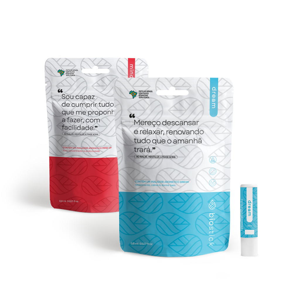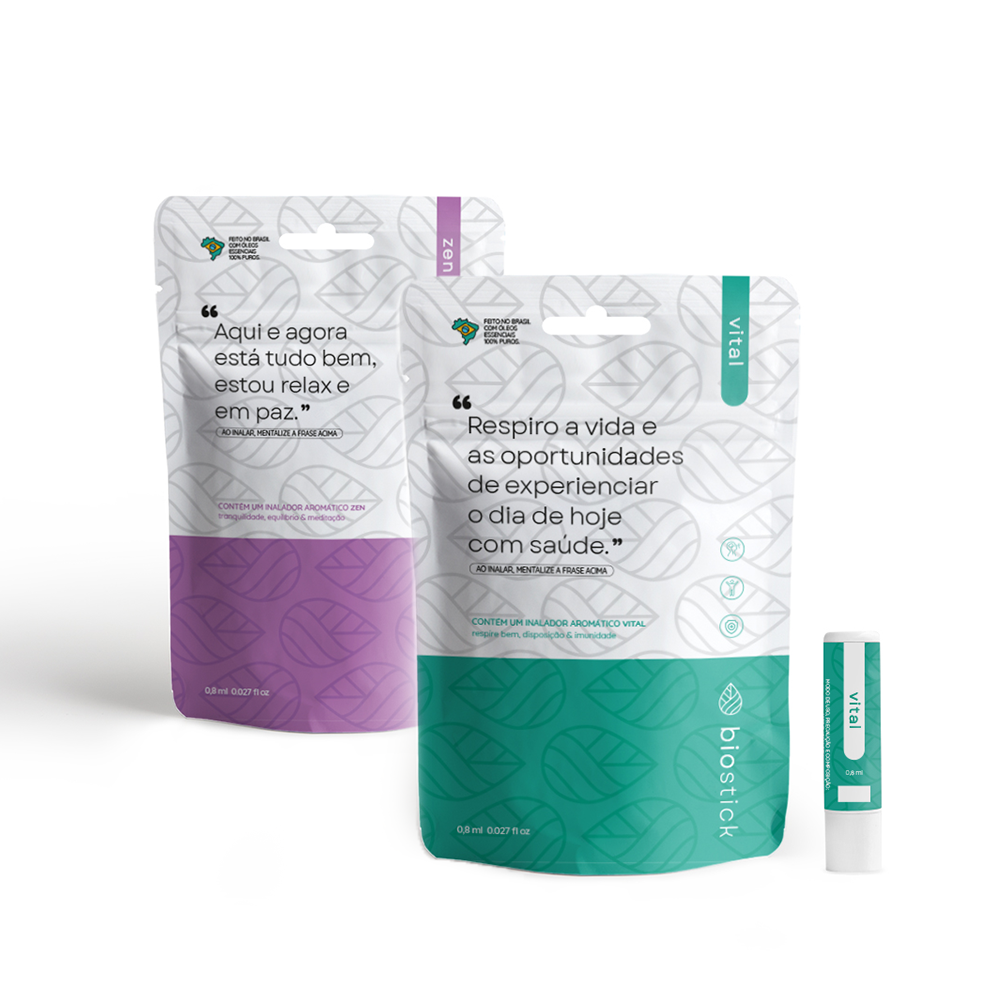 Sticks que se complementam: um traz calma e alívio da ansiedade, o outro descongestiona, fortalece a imunidade e renova o fôlego e a vitalidade.